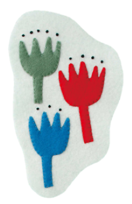 10号からは新しいキルトピースを作りましょう。ムーミン谷に咲く、色とりどりのチューリップをアップリケした、ムーミンファンにはたまらない作品です。赤、青、グリーンのフェルトのチューリップは、見ているだけで元気がもらえそう!