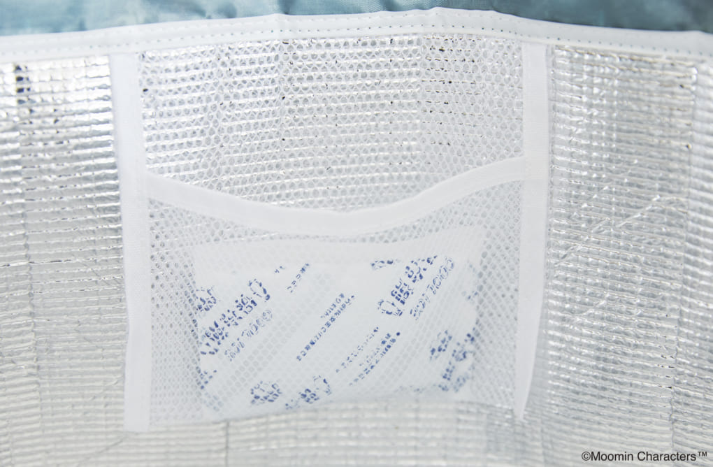 巾着タイプのトップカバー付きで、中身を隠せます。内側にはメッシュポケットが付いているので、保冷剤を入れることも可能!