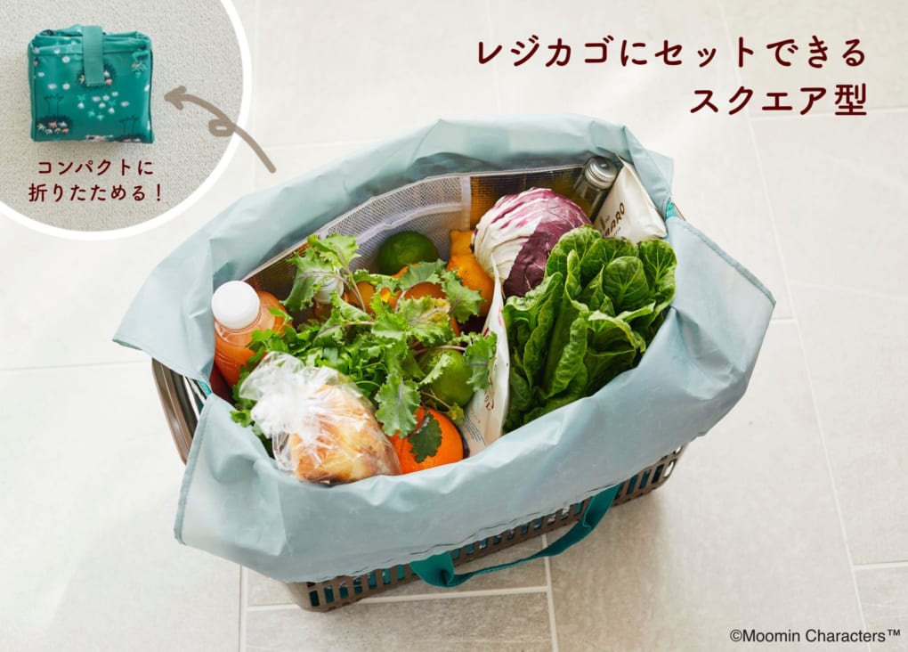 レジカゴにセットできるスクエア型でたっぷり入るのに、コンパクトに折りたたんで持ち運べるのもうれしいポイント♪