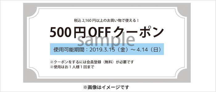 税込2,160円以上のお買い物で使える500円OFFクーポンをダウンロードできます。