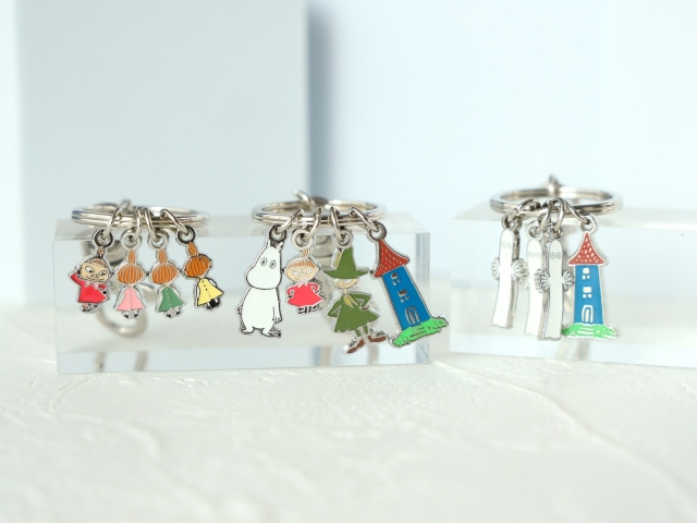 ムーミン谷の仲間たちが並んでいる姿が愛らしい、指先ほどのちいさいメタルチャームが連なった4連タイニーチャーム。ナスカンでバッグに簡単に取り付けることが出来ます。