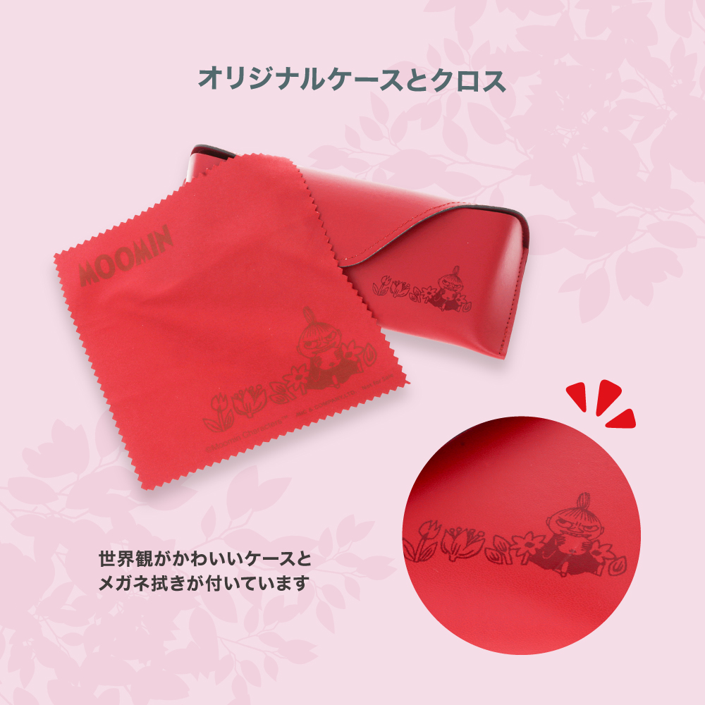 落ち着いた赤色のケースとクロスは、まるでリトルミイがこちらを覗き込んでいるような愛らしいデザイン。