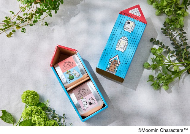 ムーミンやしきの形がかわいいギフトボックスに、バラエティ豊かでかわいい!4種のパッケージが入ったギフトセット。“パンに合う”と“カフェオレに合う”2種類のコーヒーを50gずつ、デザイン違いの商品を詰め合わせています。
