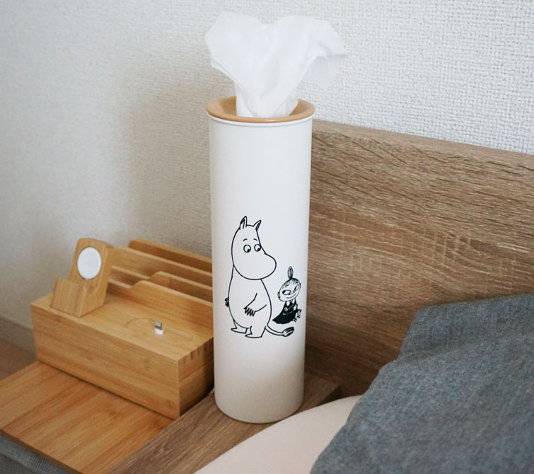「スリムティッシュケース」その名の通り直径約8cmのスリムサイズ!枕元やキッチン、洗面台などにもスペースを気にせず置けるのが嬉しいポイントです♪