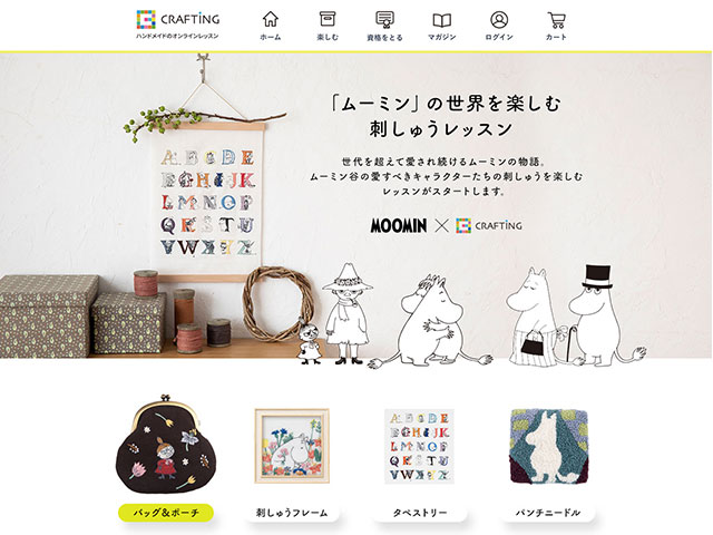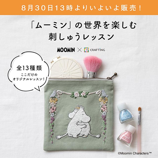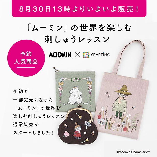 日本ヴォーグ社のハンドメイドのオンラインレッスン「CRAFTING」にて、ムーミン谷の愛すべきキャラクターたちがデザインされたハンドメイドレッスンが楽しめる手芸キットの通常販売がスタートしました。先行予約販売では完売となった人気商品です!